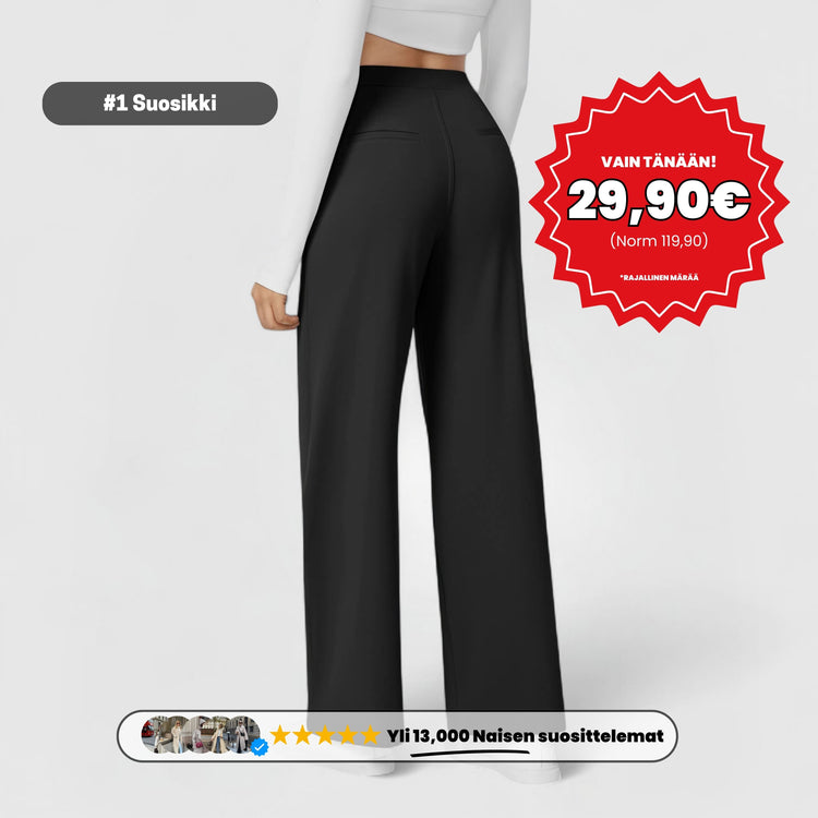 "Olen kokeillut kymmeniä työhousuja, mutta nämä ovat ensimmäiset, joissa tuntuu kuin olisin joogahousuissa. Täydellinen istuvuus heti ensimmäisellä yrityksellä." – Laura, 38 v