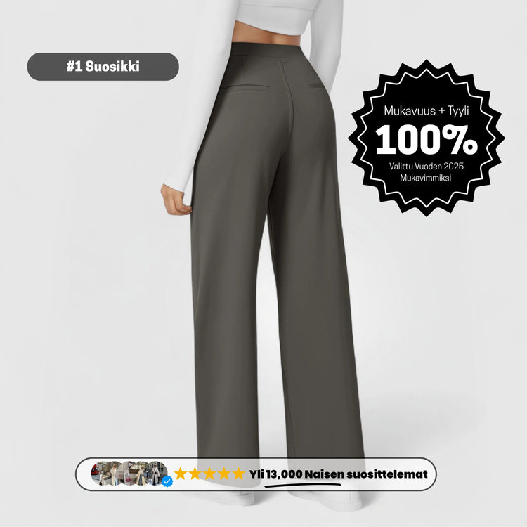 "Olen kokeillut kymmeniä työhousuja, mutta nämä ovat ensimmäiset, joissa tuntuu kuin olisin joogahousuissa. Täydellinen istuvuus heti ensimmäisellä yrityksellä." – Laura, 38 v